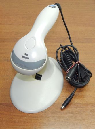 Лазерный, ручной сканер с одной плоскостью сканирования. Входящий в комплект поставки стенд позволяет использовать сканер в качестве стационарного устройства. Имеет встроенный инфракрасный сенсор, обеспечивающий включение сканера при появлении объекта в области считывания.