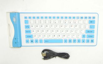 Клавиатура USB силиконовая без русских букв на клавишах бело-голубая